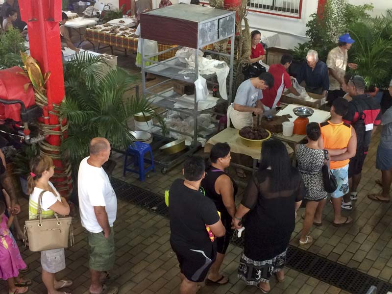On Oct 22nd we motored down inside the reef from Papeete (carefully weaving in and out of red and green and yellow markers — that are passed exactly opposite of the way we navigate in the US) to Marina Taina. The route goes right along Faa’a Airport, so we had to call in to Airport Control at the end of each runway so we didn’t get run over by a 757.